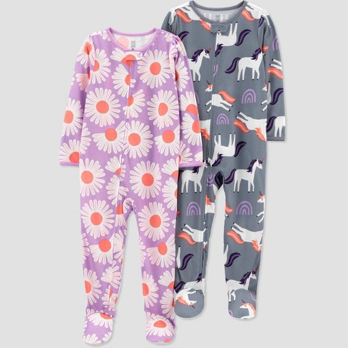 Carter S Just One You Toddler Girls 2pk Flowers And Horses Footed Pajama Gray Purple 3t Target